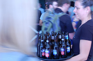 The music portion of SXSW began today as hundreds of musicians, fans and freaks took to the streets of downtown Austin to drink ice cold Lone Star beers and watch dozens and dozens of little-to-unknown bands try to generate buzz for their music. It's early, still, about 8pm, but there is no sign of things slowing down anytime soon. Here, the party goes on for days, nonstop, with more than a few hundred bands set to take to the stages, streetcorrners, bartops, sidewalks, back alleys, public transportation and anywhere else deemed fitting for a live performance.